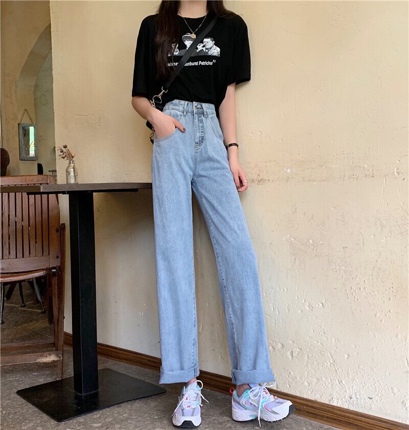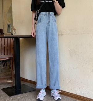 スプリングハイウェストジーンズ 薄手パンツ スタイル 春物 試着室62650573372