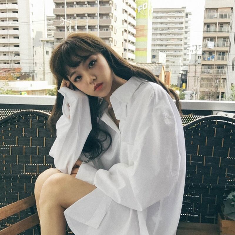 ホワイトシャツ スプリングスタイルルーズジャケット トップス ロング 春物 試着室48290515414