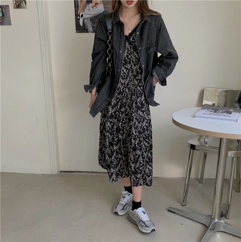 色:シフォンスリングスカートワンピース,デニムジャケットワンピース