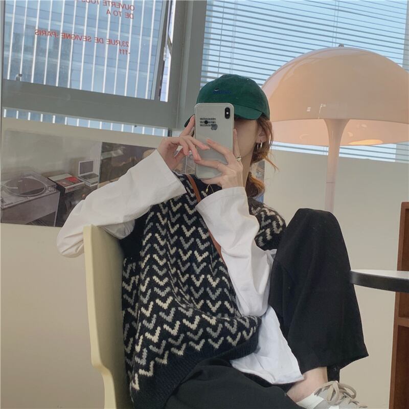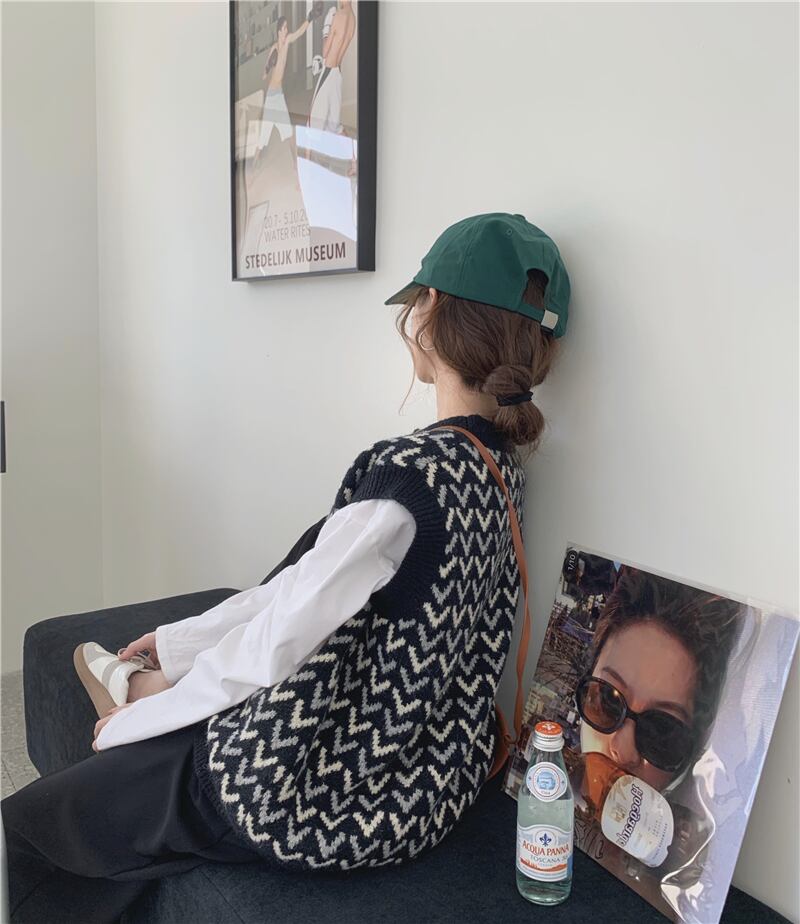 スプリングオータムルーズスタイルノースリーブニットレディース 春物 秋物 試着室40442665338