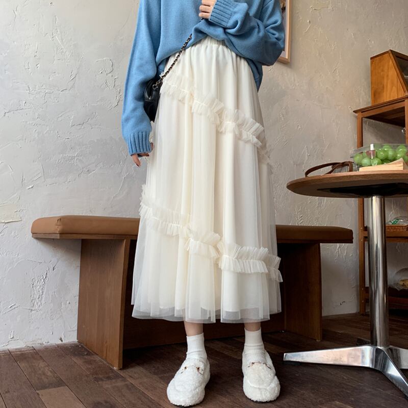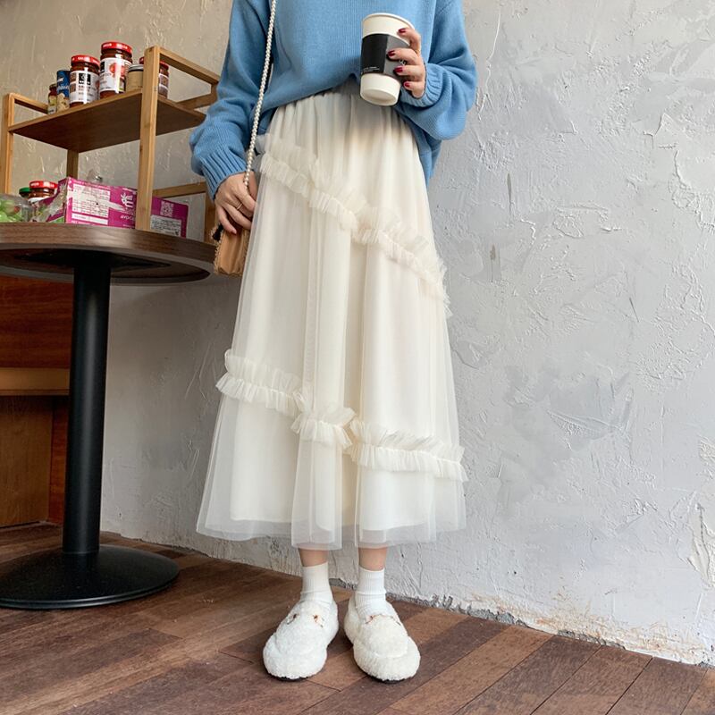 メッシュスカート スプリングオータムスタイルAラインハイウェストスリム 春物 秋物 試着室88004300244
