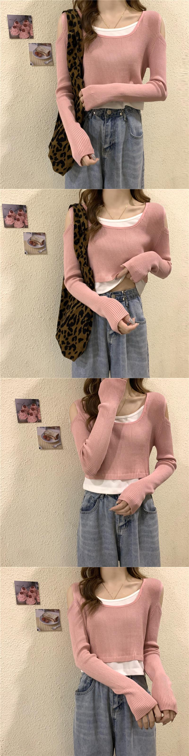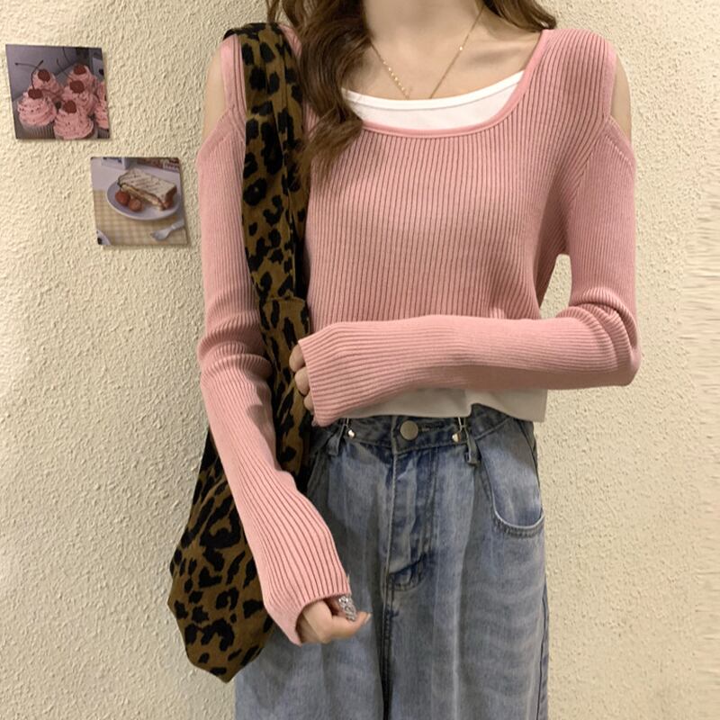 ショートトップス スプリングオータムTシャツ シャツ ツーピースストラップレス ロング 春物 秋物 試着室97049308868