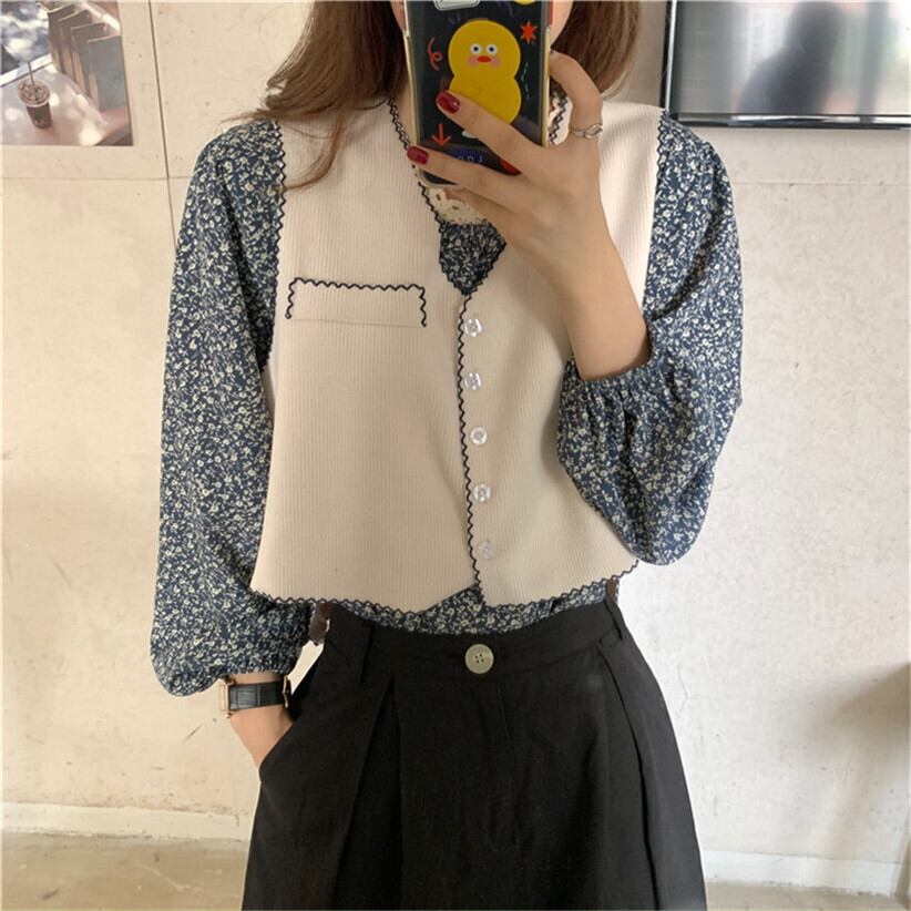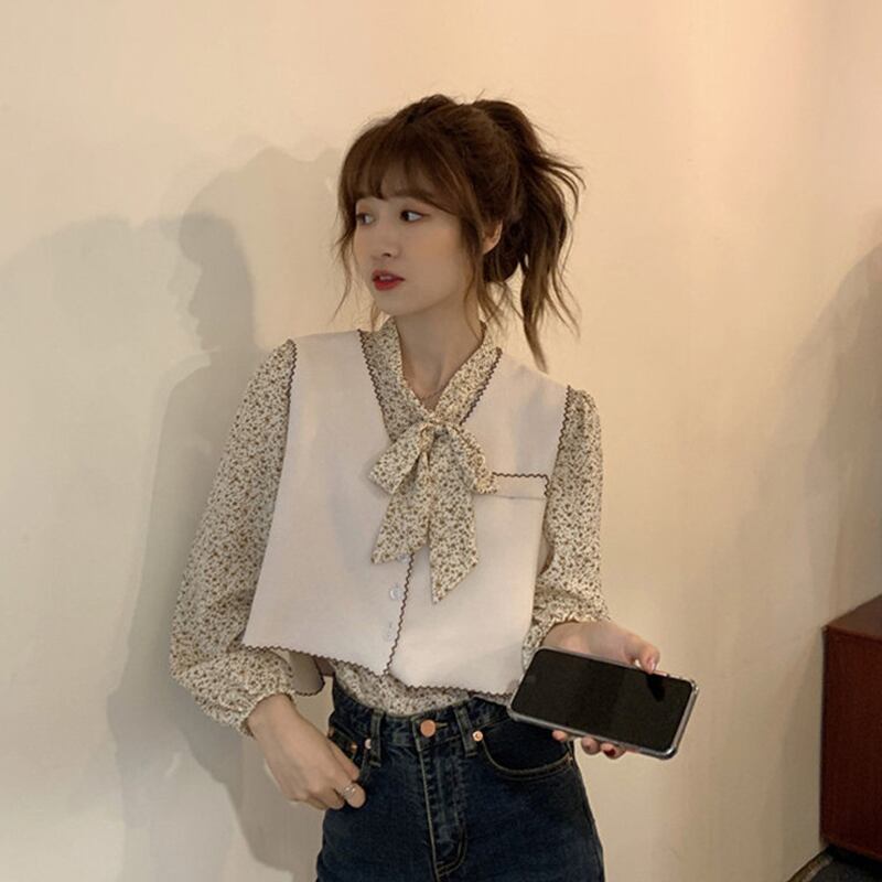 フローラルシャツ スタンダードスプリングオータムシフォントップス レトロ 春物 秋物 花柄 試着室46165386153