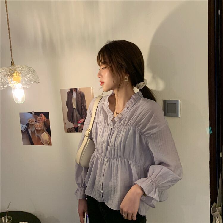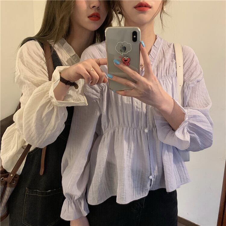 スプリングブラウス Vネックシャツ ロング 春物 試着室73965187599