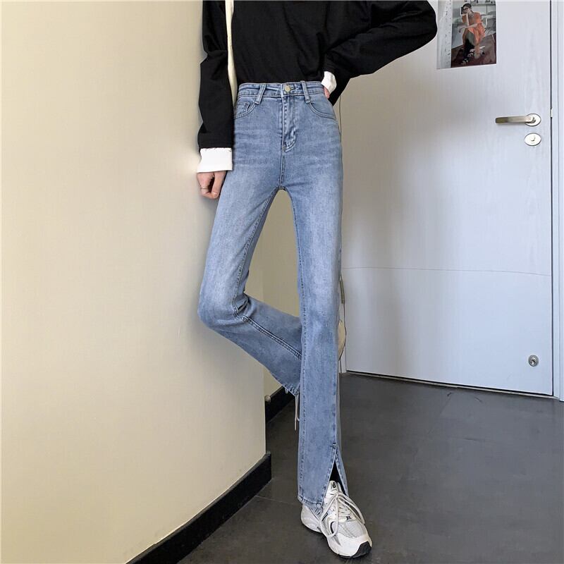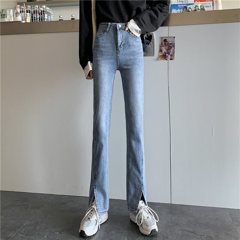 スタイルスタンダードハイウェストジーンズ スリムスリット レトロ オータム 秋物 ウィンター 冬物 試着室15174299055
