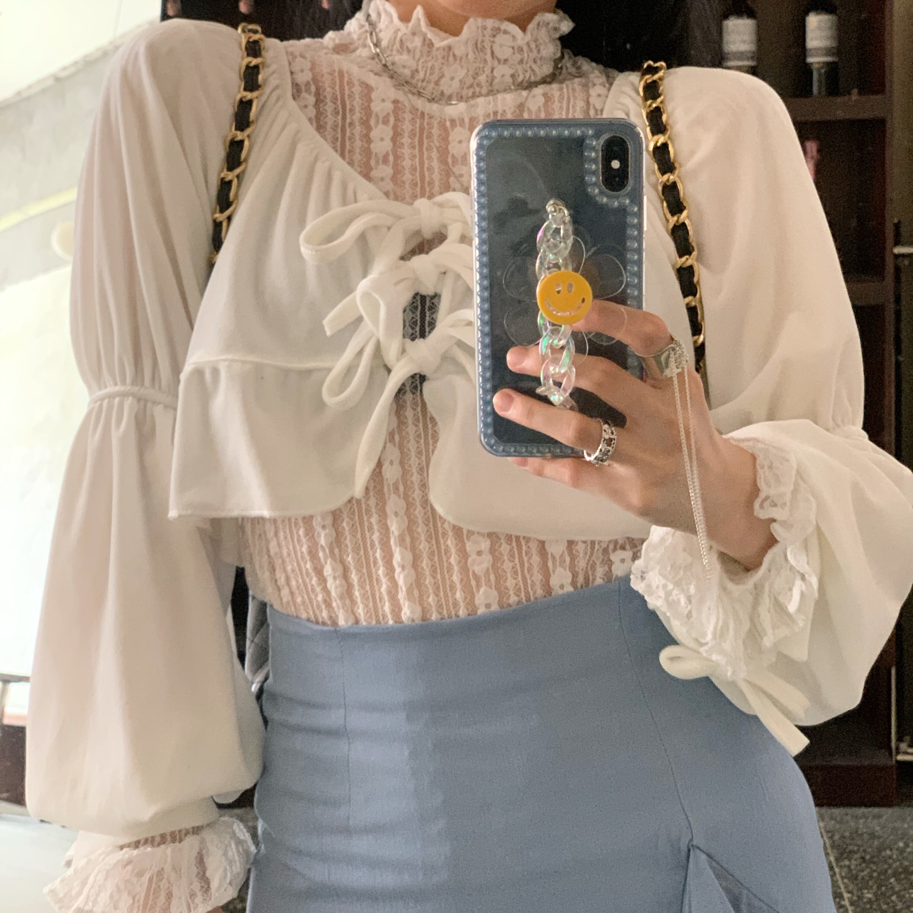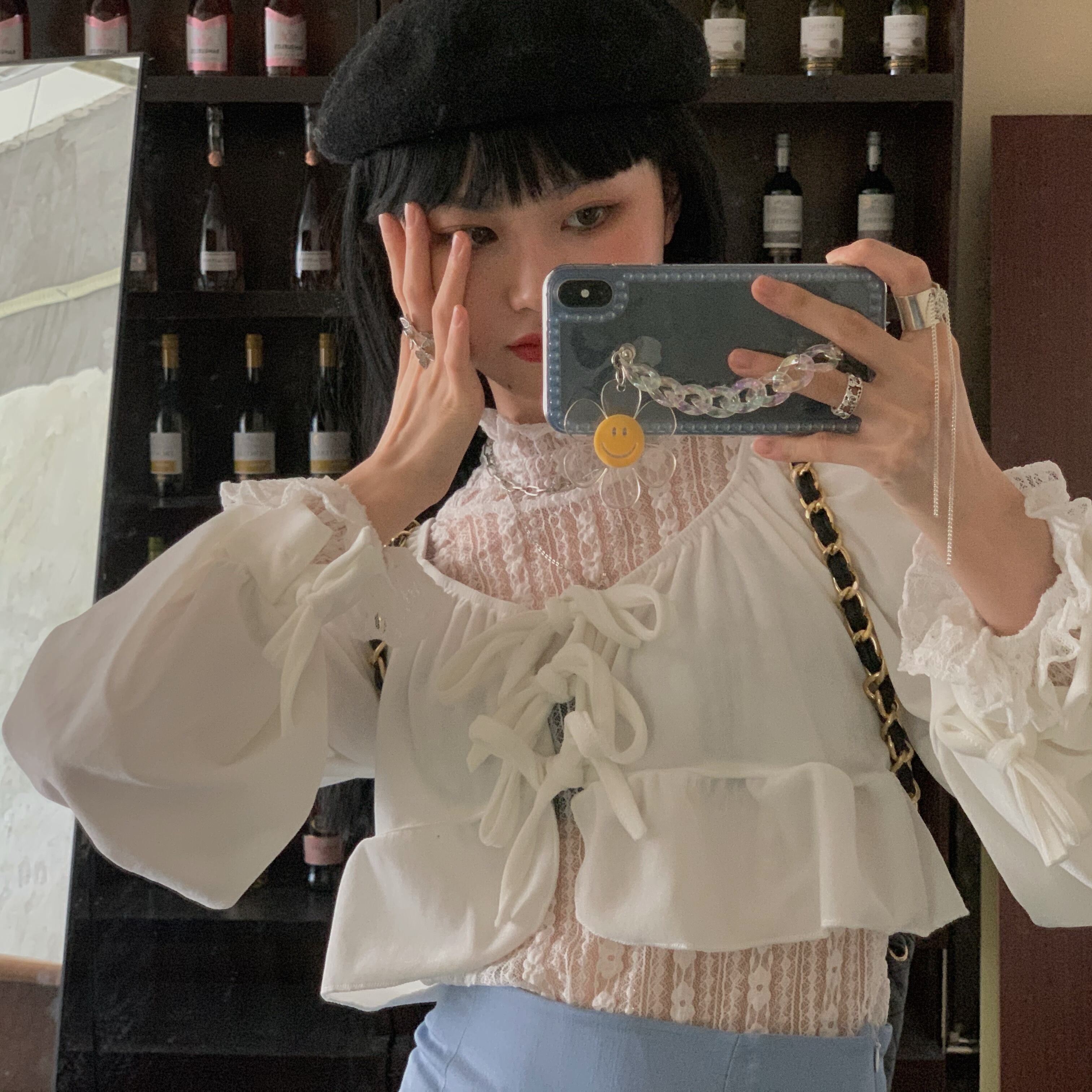 スプリングレーストップス シャツ スカート フリル ラッフル 春物 レースアップ 試着室67627699820