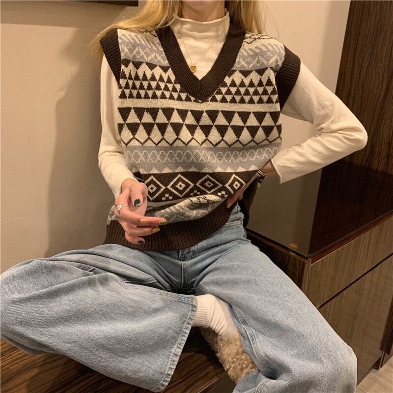 スプリングスタンダードVネックセーター ルーズニットレディース レトロ 春物 試着室69071224353