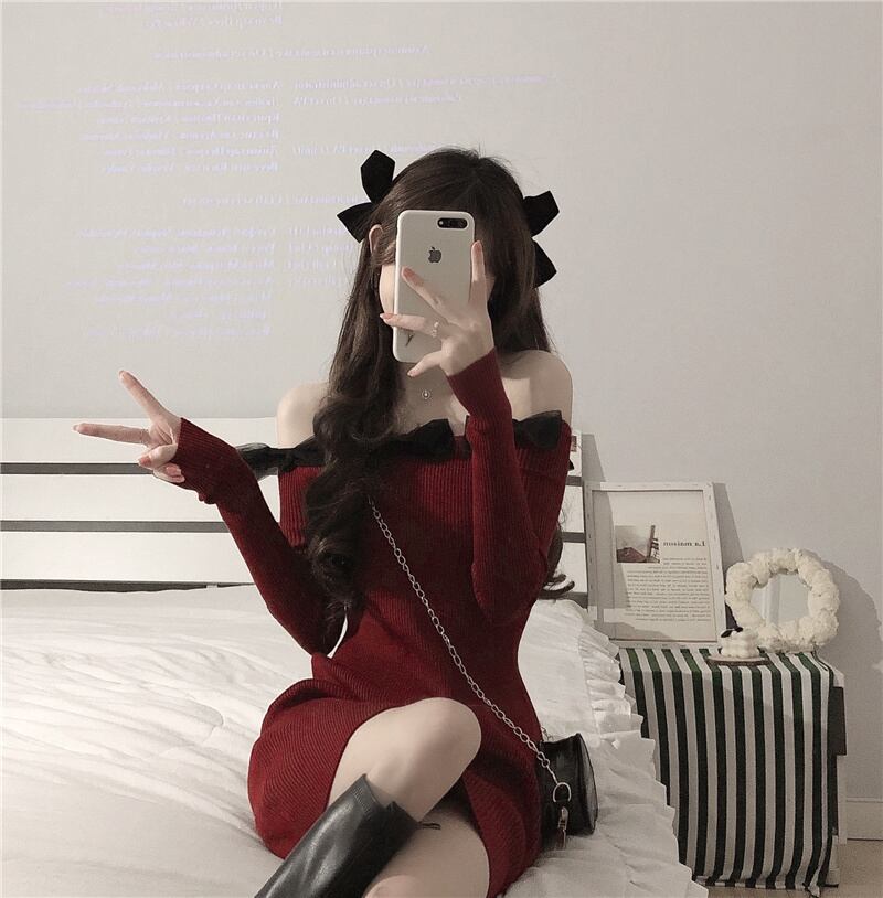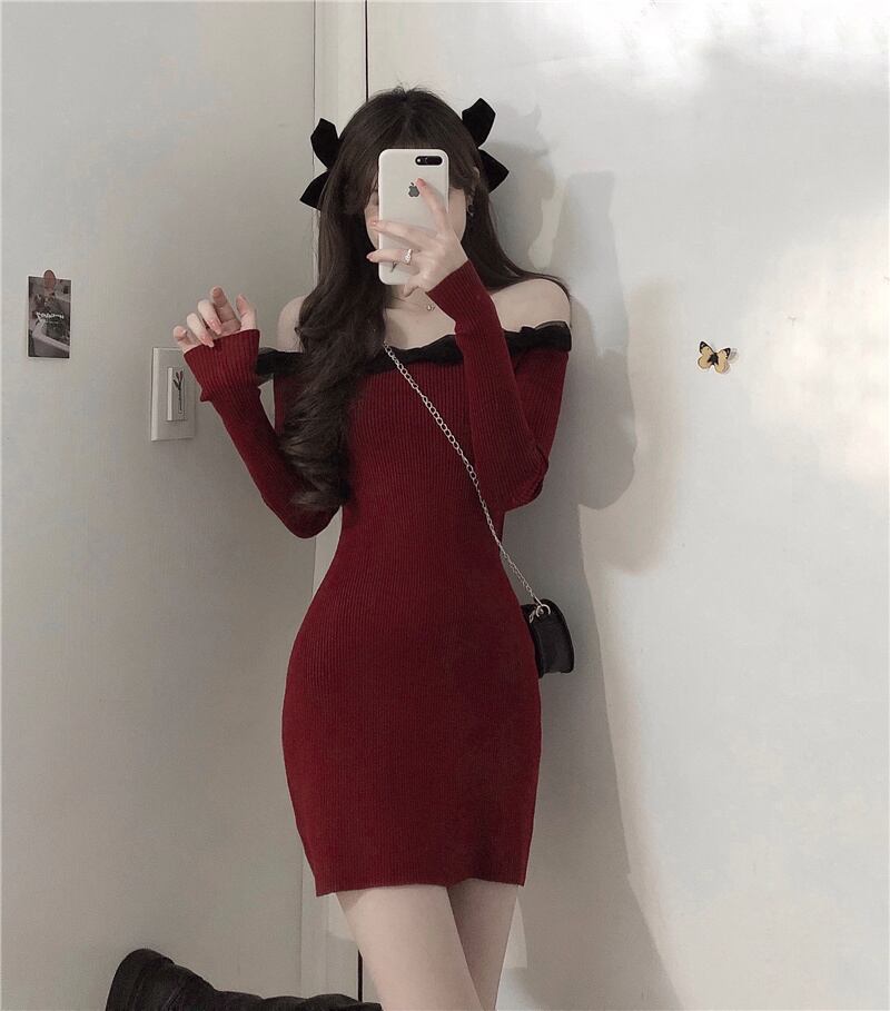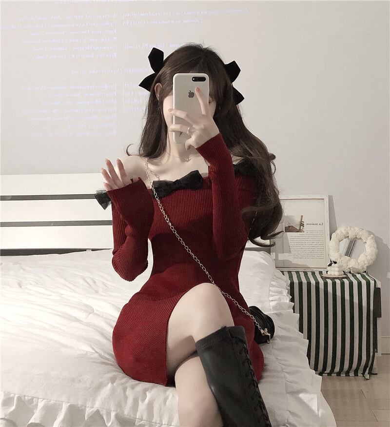 スリムスカート スプリングウェストレッドドレス 春物 試着室70647134832