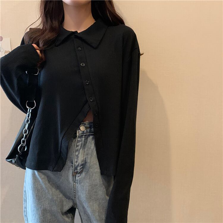 スプリングスタイルスリムバックルシャツ セーター レディース 春物 試着室9800316767