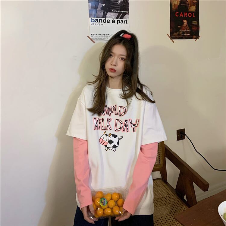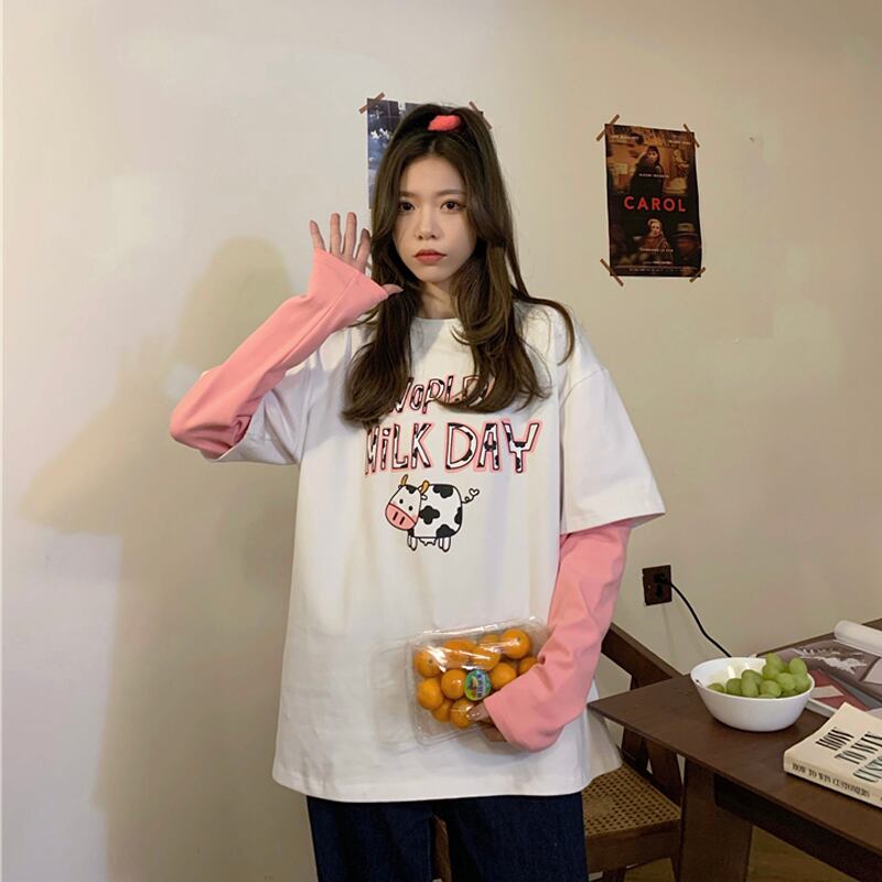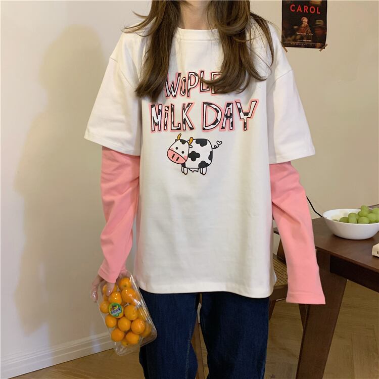 スプリングルーズトップス プリントツーピースレディース ロング シャツ 春物 Tシャツ 試着室48498738299