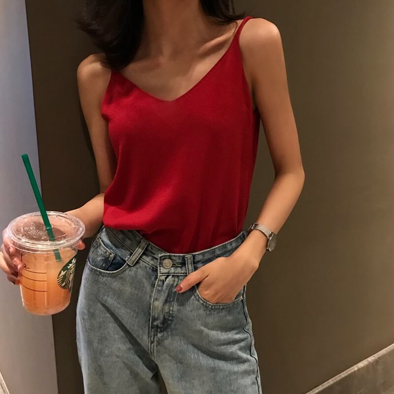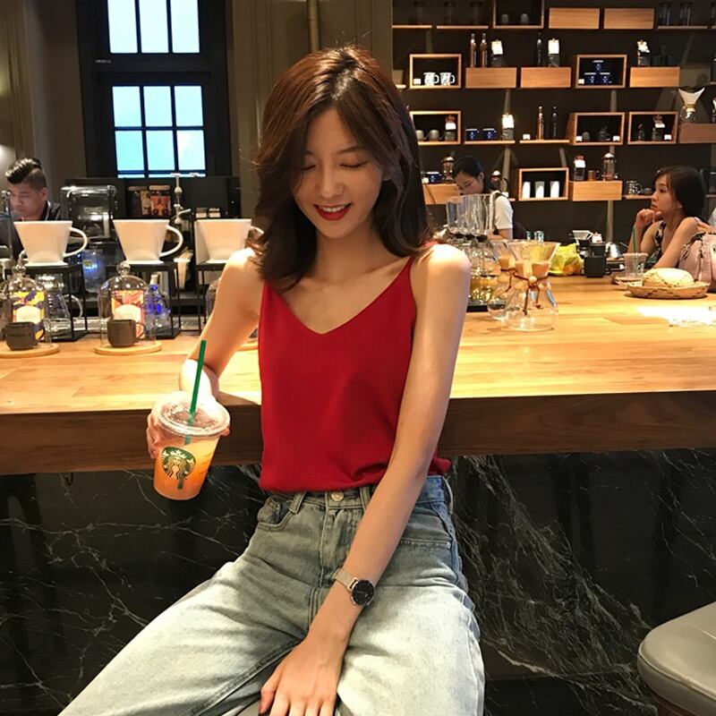 スプリングサマーレッドノースリーブトップス 春物 夏物 試着室58778791866