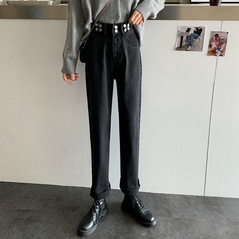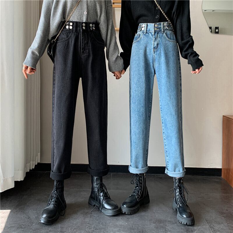 パンツ スプリングオータムハイウェストウェストスリムジーンズ ルーズ 春物 秋物 試着室86588479895