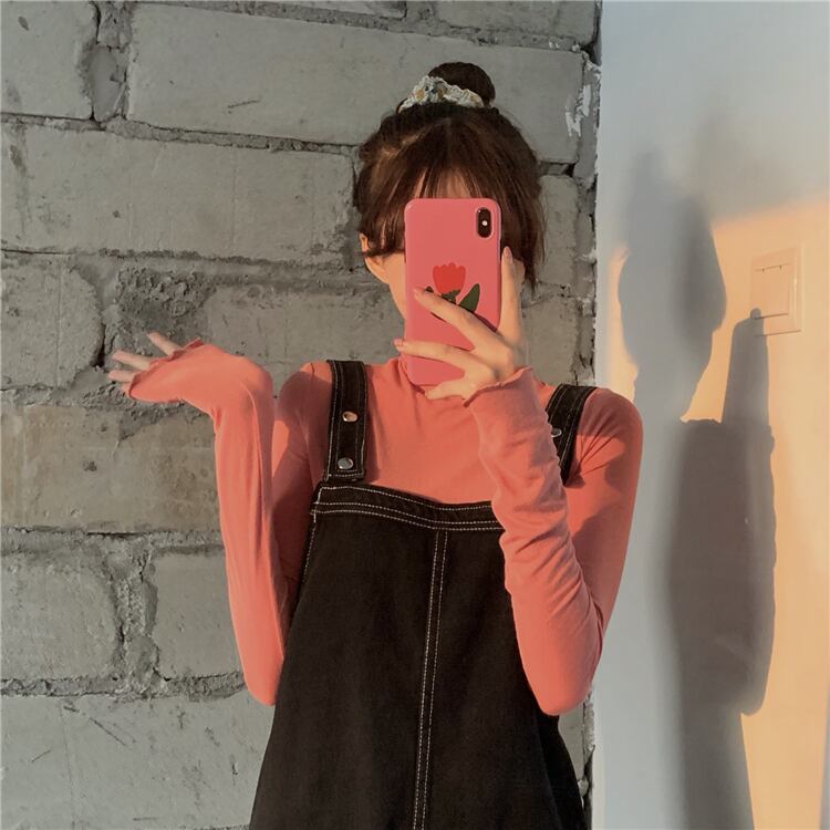 スプリングオータムスリム薄手Tシャツ ロング レッド 春物 秋物 試着室48718383716