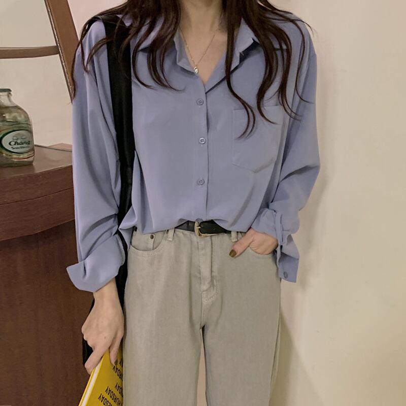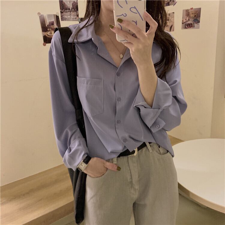 スプリングブルーシャツ レディースルーズ薄手トップス 春物 試着室34403994734