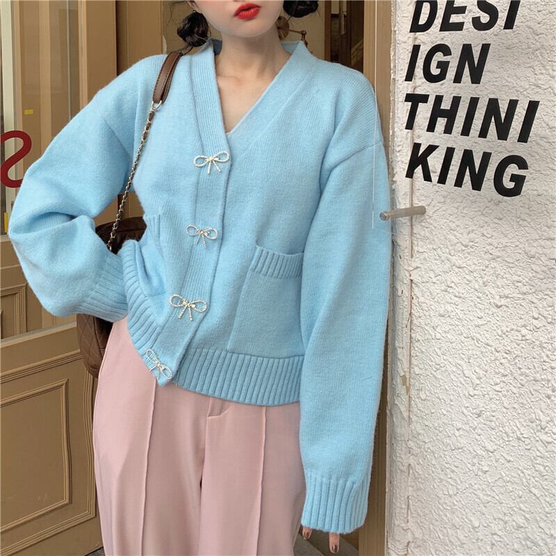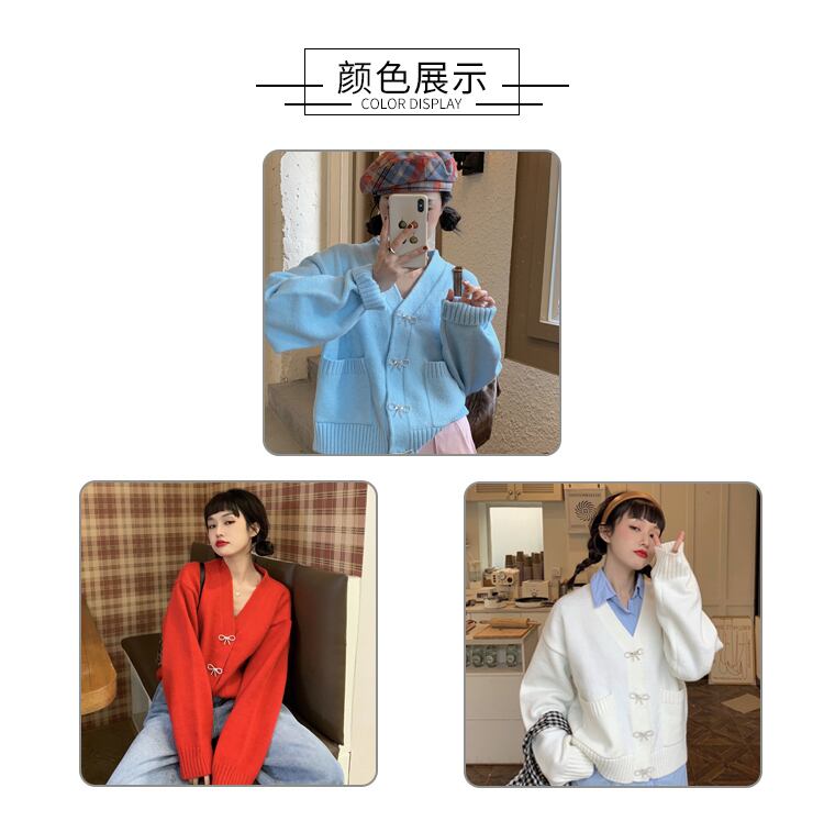 ショートセーター レディーススプリングオータムルーズリボンカーディガン 春物 秋物 試着室10208364823