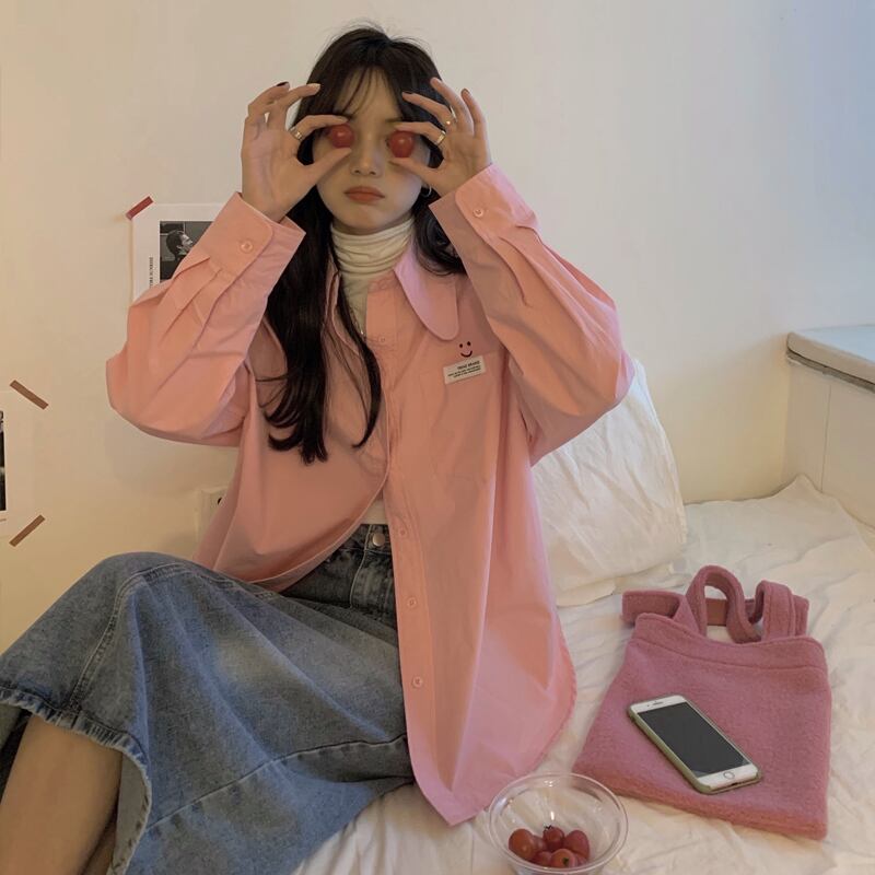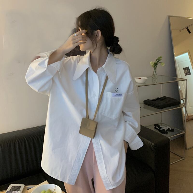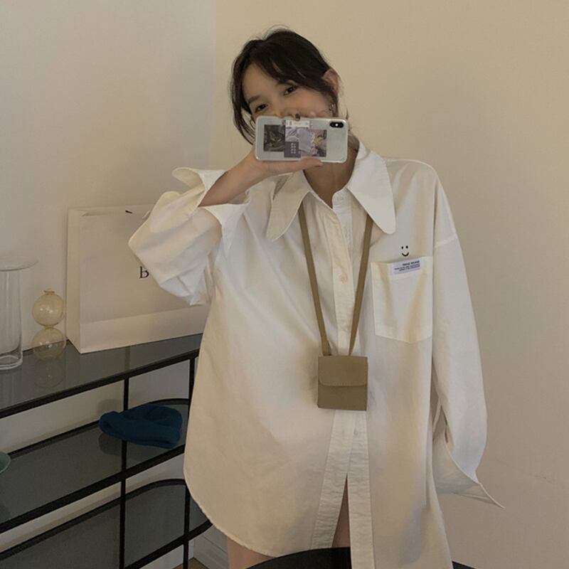 ホワイトシャツ レディーススプリングオータムスタンダードブラウス ロング レトロ 春物 秋物 試着室47823676593