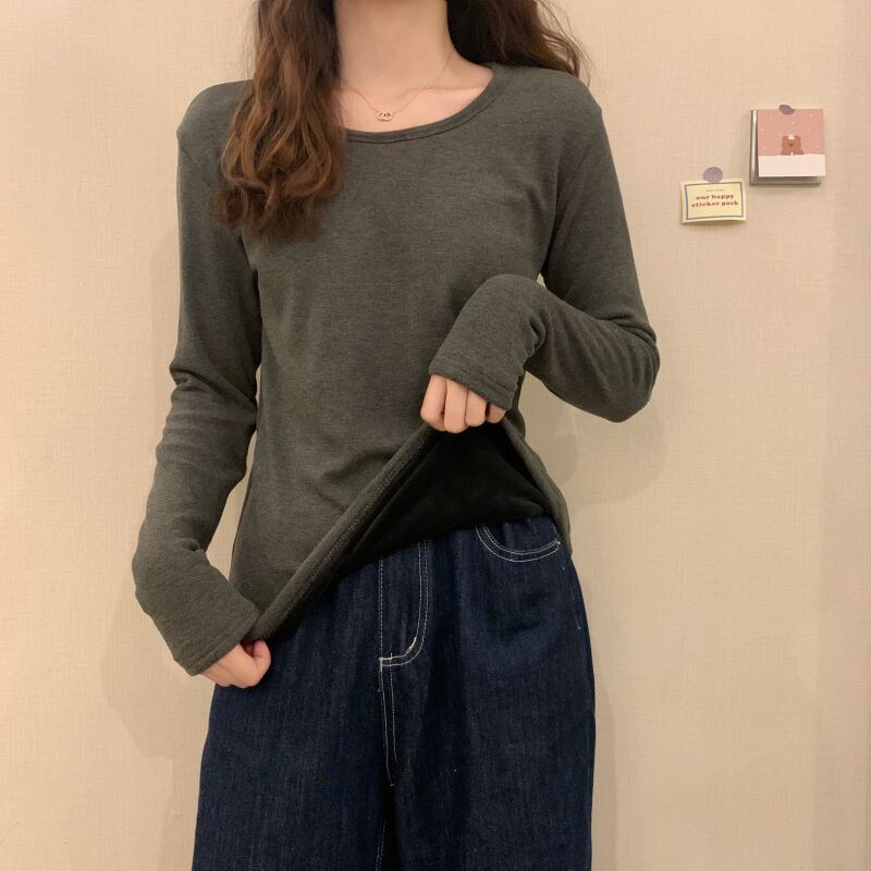 スプリングオータムベルベットシャツ ジャケット ラウンドネックTシャツ レディース ロング 春物 秋物 Oネック 試着室660497701