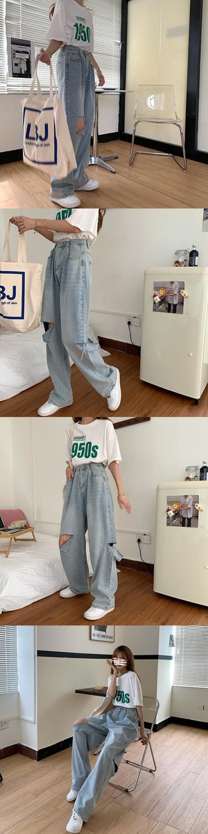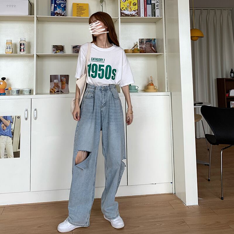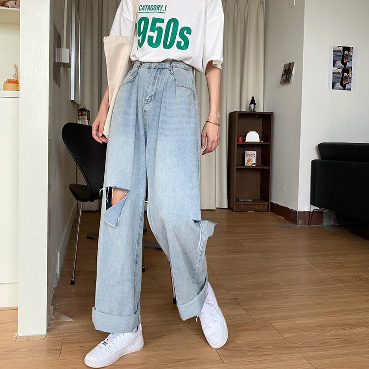 スプリングハイウェストウェストスリムパンツ ルーズジーンズ レディース 春物 試着室44361996469