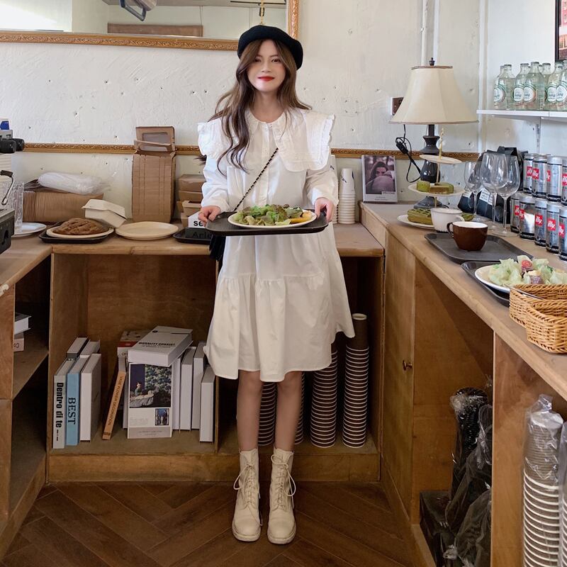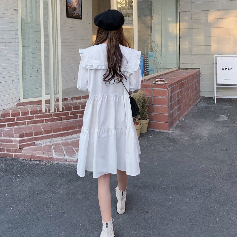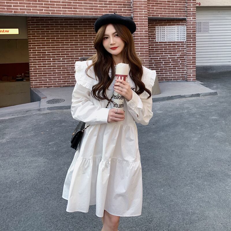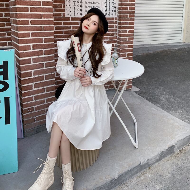 スプリングカラーホワイトドレス スタンダードスカート レトロ 大人ガーリー スウィート キュート カジュアル 春物 試着室12031101117