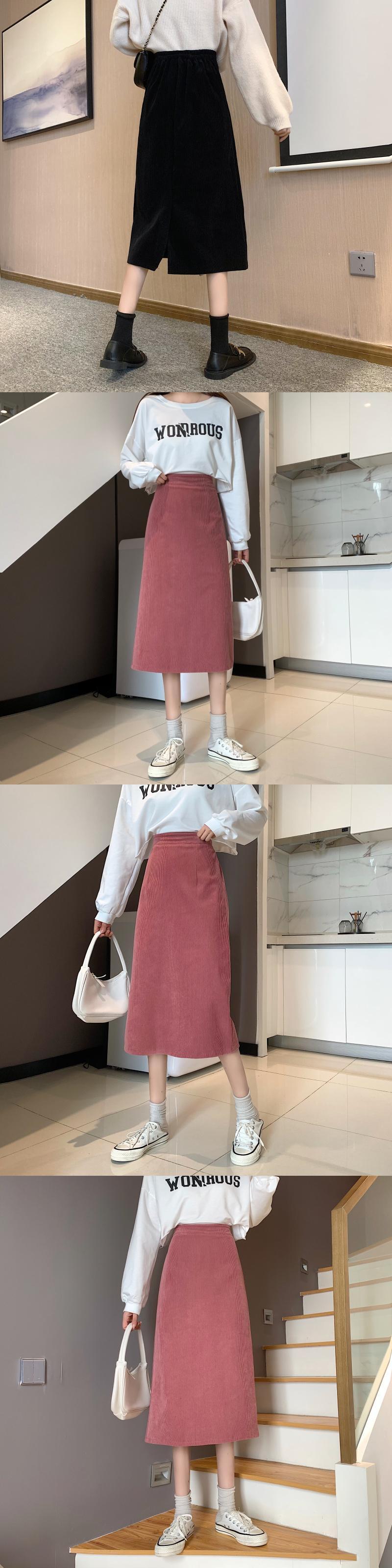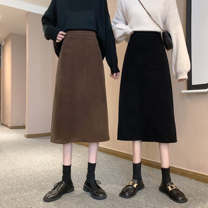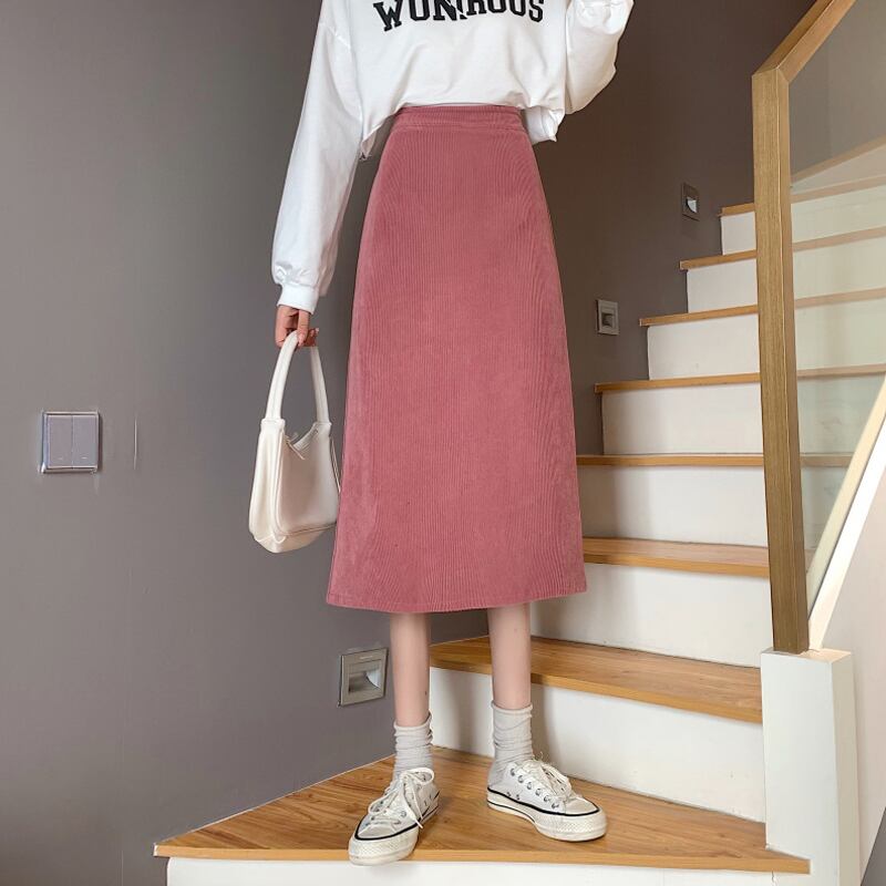 スカート スプリングオータムコーデュロイハイウェストウェストAライン 春物 秋物 試着室79490713242