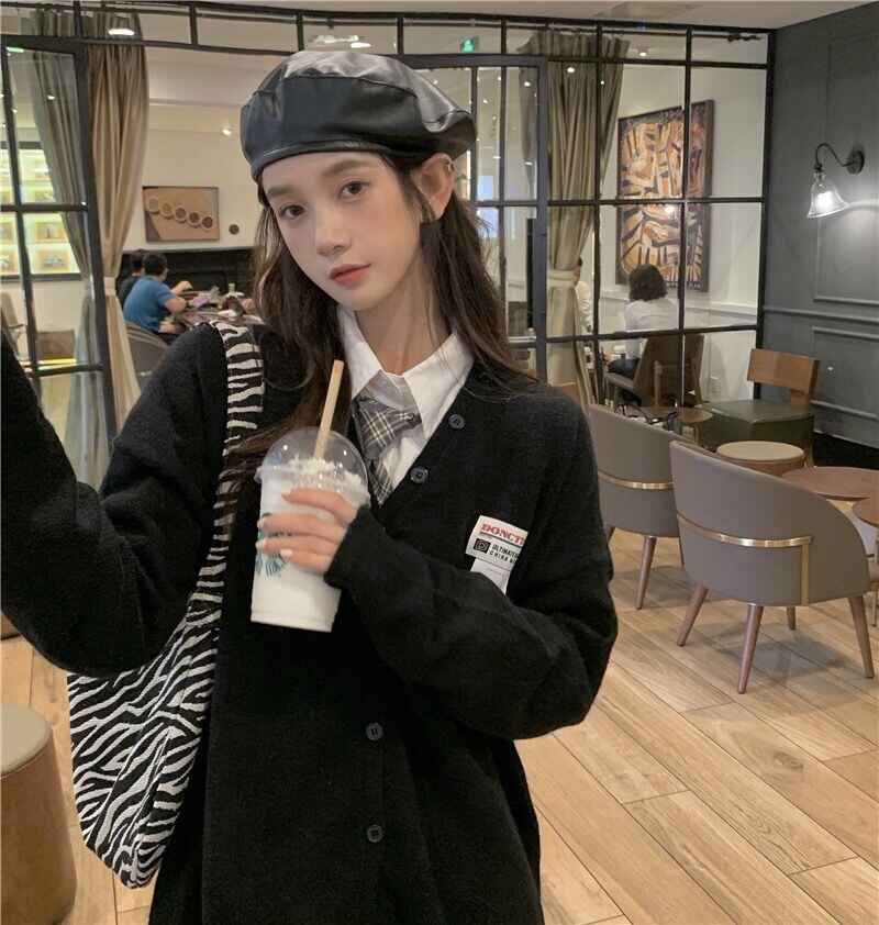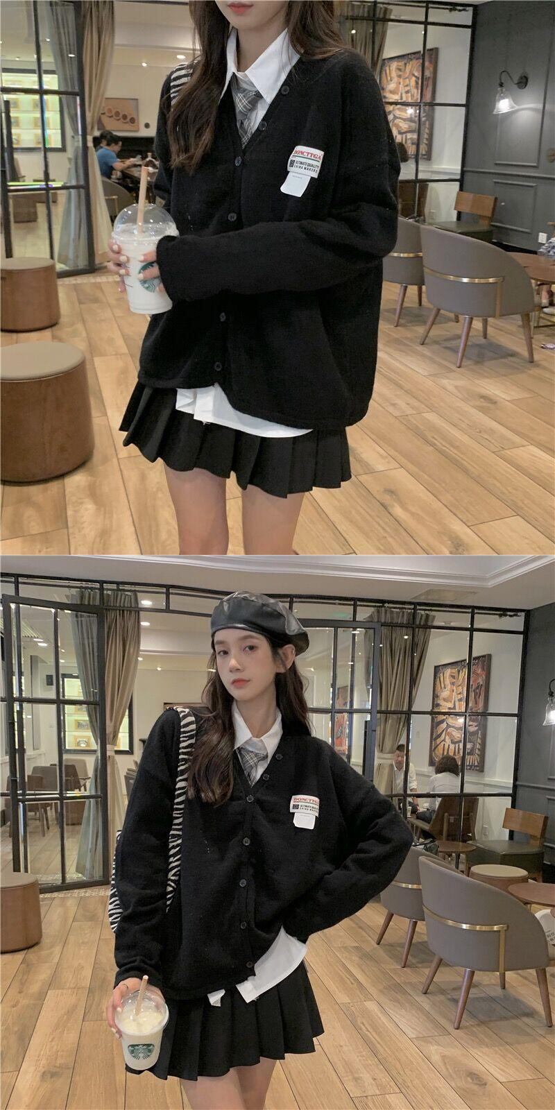Vネックカーディガンセーター レディーススプリングルーズ薄手ニットジャケット ロング 大人ガーリー スウィート キュート カジュアル 春物 試着室20597900824