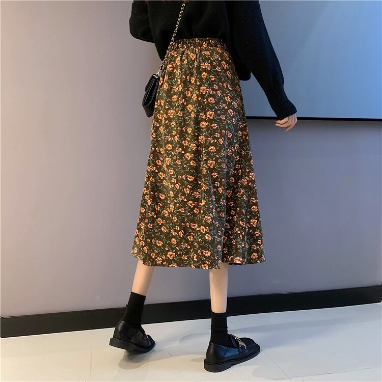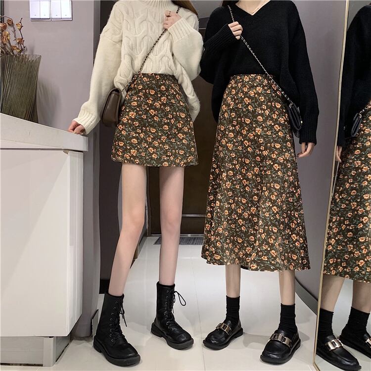 スプリングスタンダードフローラルハイウェストウェストルーズ薄手ショート レトロ 春物 花柄 スカート 試着室11214224141