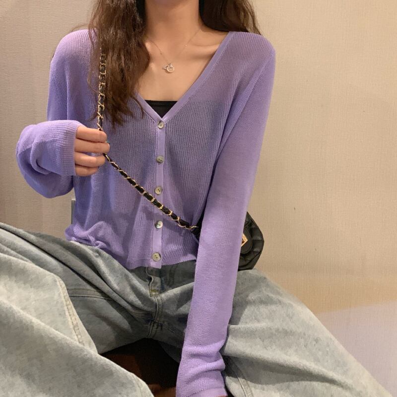 スプリングルーズ薄手ソリッド カラーセーター レディースVネックシャツ トップス ロング 春物 ソリッドカラー 試着室3626572634