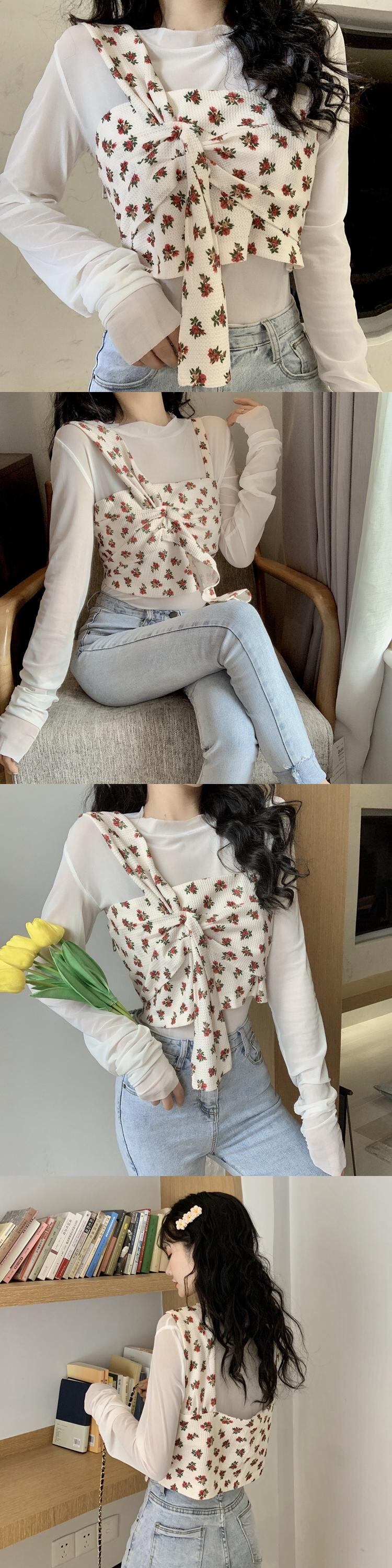 スプリングショートフローラルブラウス 春物 花柄 試着室14133518019