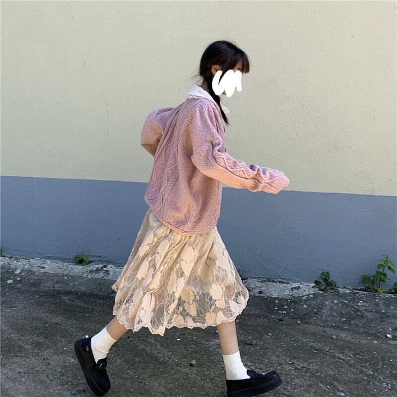 スプリングレーススカート セーター コート 大人ガーリー スウィート キュート カジュアル 春物 かわいい 試着室43454642669