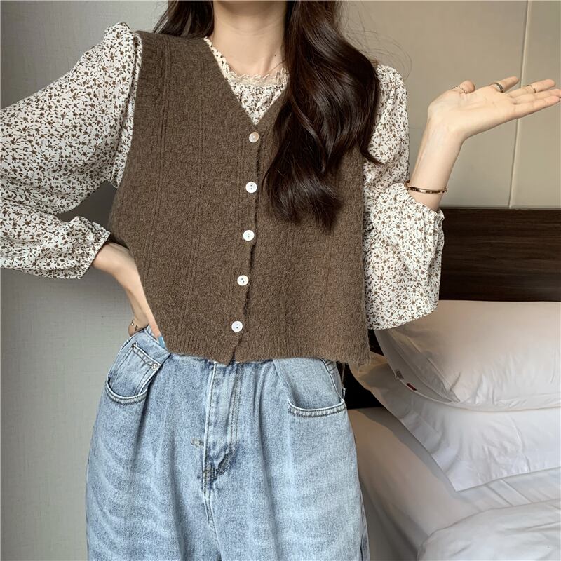 スプリングオータムスタイルノースリーブニットカーディガンレディース 春物 秋物 試着室83760036120