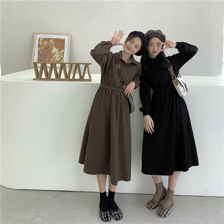 スカート スプリングオータムスタンダードドレス ウェストブラック レトロ 春物 秋物 試着室98575436178