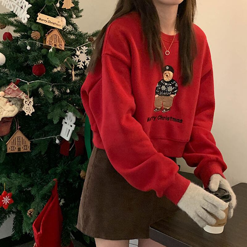 レッドセーター レディーススプリングベルベットショートトップス 春物 試着室51961435466