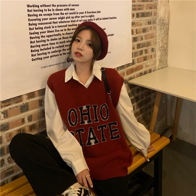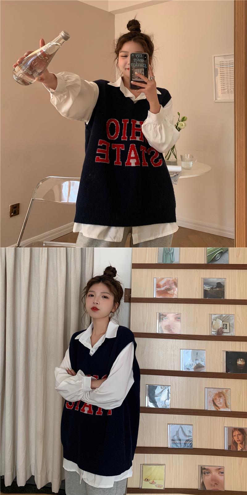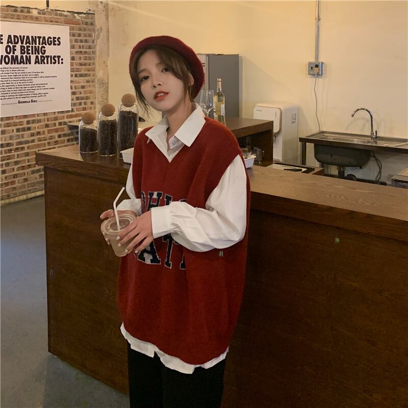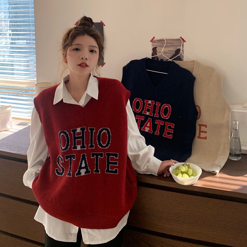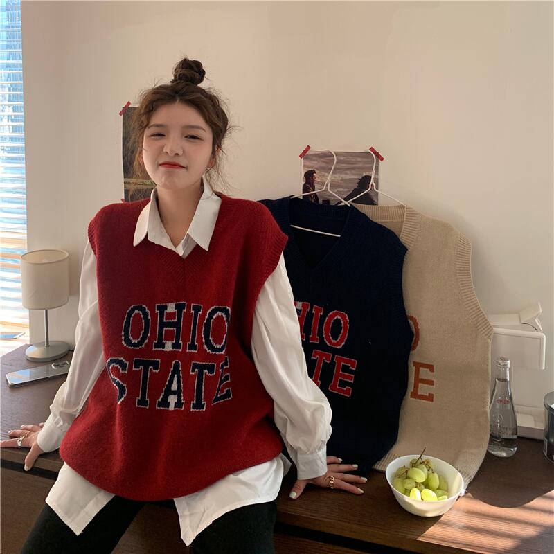 Vネックノースリーブジャケット スプリングオータムスタイルルーズニットセーター レディース 春物 秋物 試着室48611943577