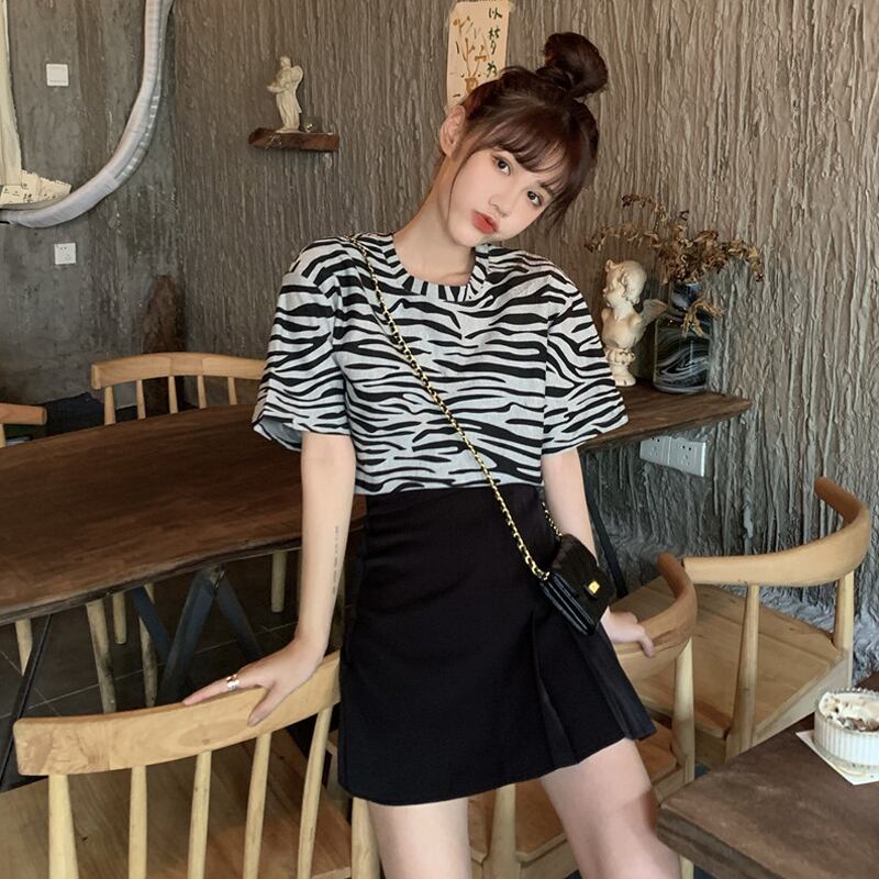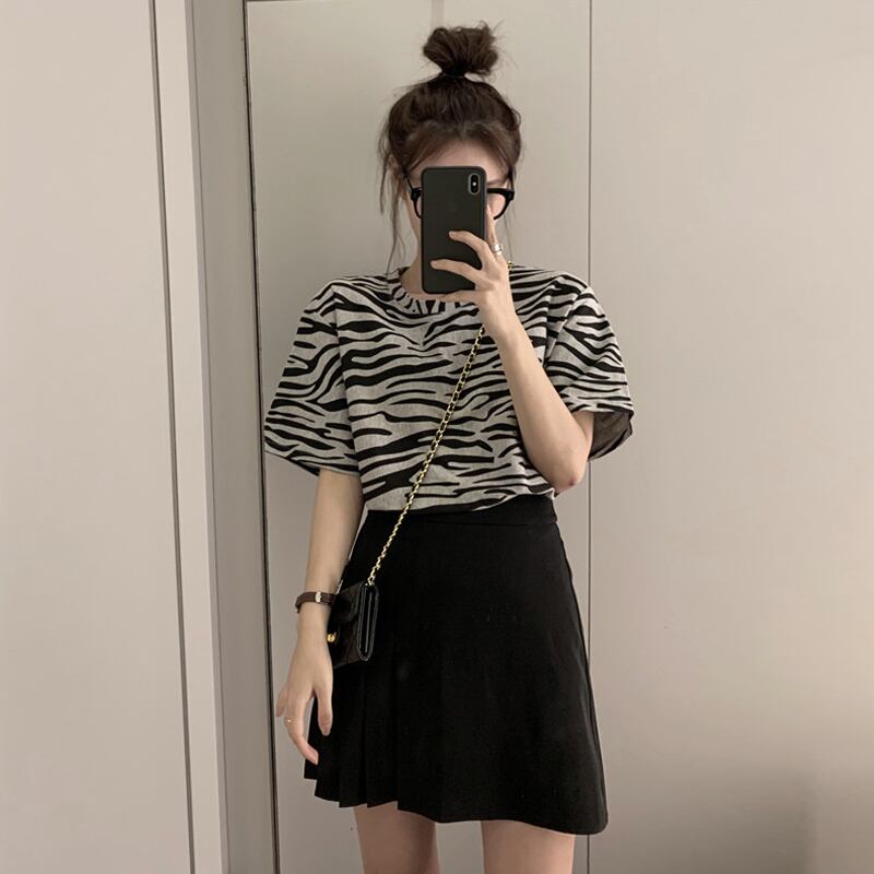 スプリングルーズ半袖スリーブTシャツ ハイウェストウェストスカート ショート ハーフスリーブ 春物 試着室98545472948