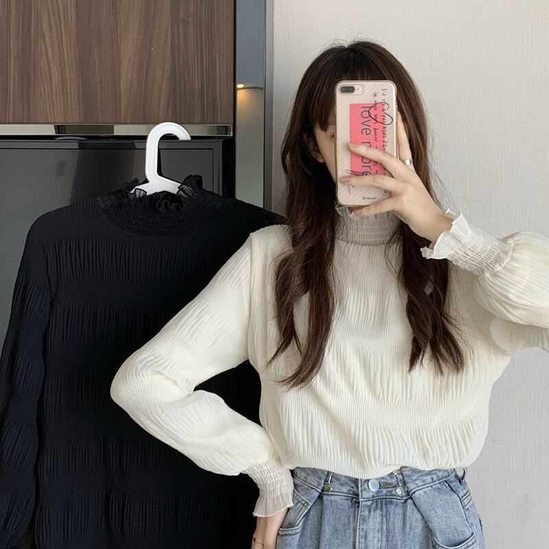 スプリングスタイルベルベットシャツ レースカラートップス ロング 春物 試着室98237478764