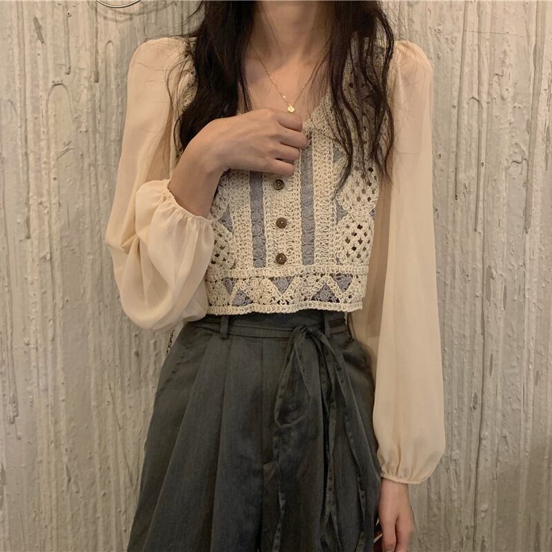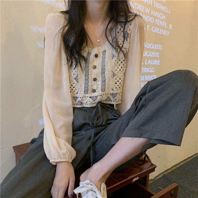 スプリングスタイルシャツ トップス ロング 春物 スクウェア ステッチ 試着室88035107170
