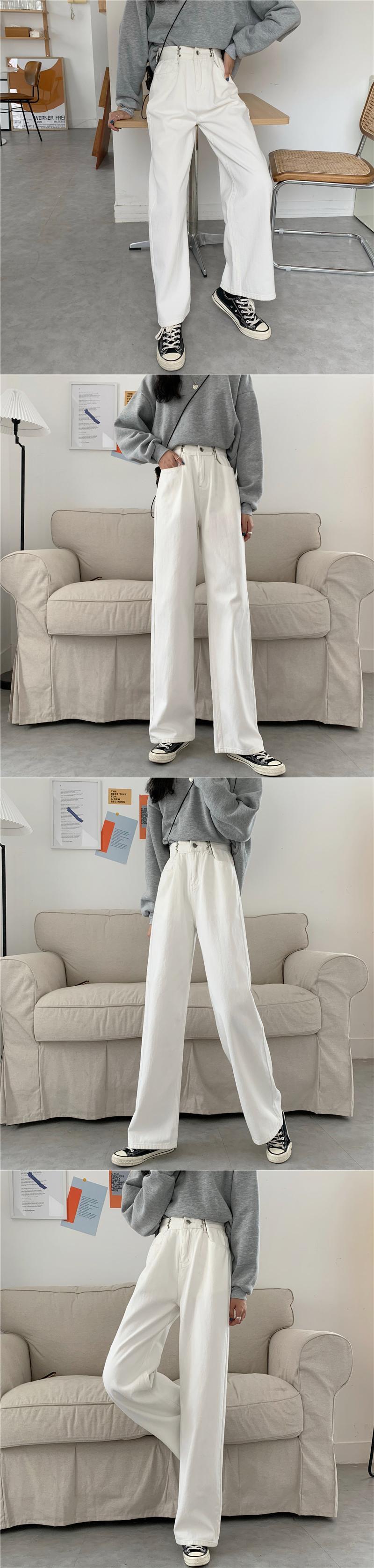 ホワイトパンツ スプリングオータムルーズ薄手ハイウェストジーンズ 春物 秋物 試着室41015119130