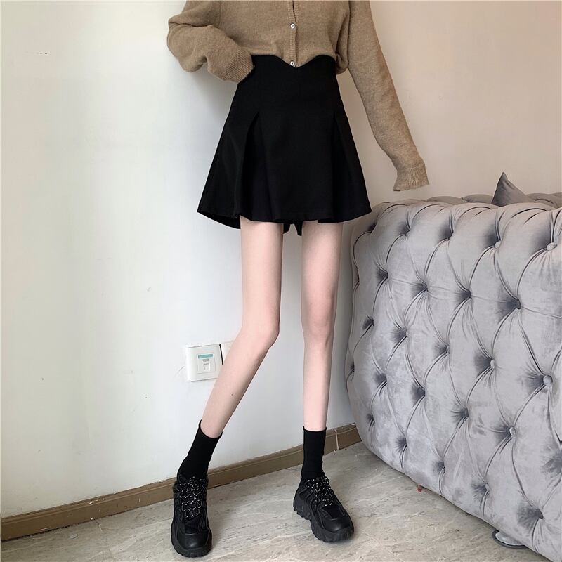 スタンダードブラックスカート スプリングオータムハイウェストウェストスリムショート レトロ 春物 秋物 試着室34637281169