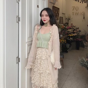 色:シングルウォームビーングリーンキャミソール,レーススカートワンピース,ライトベージュカーディガンワンピース