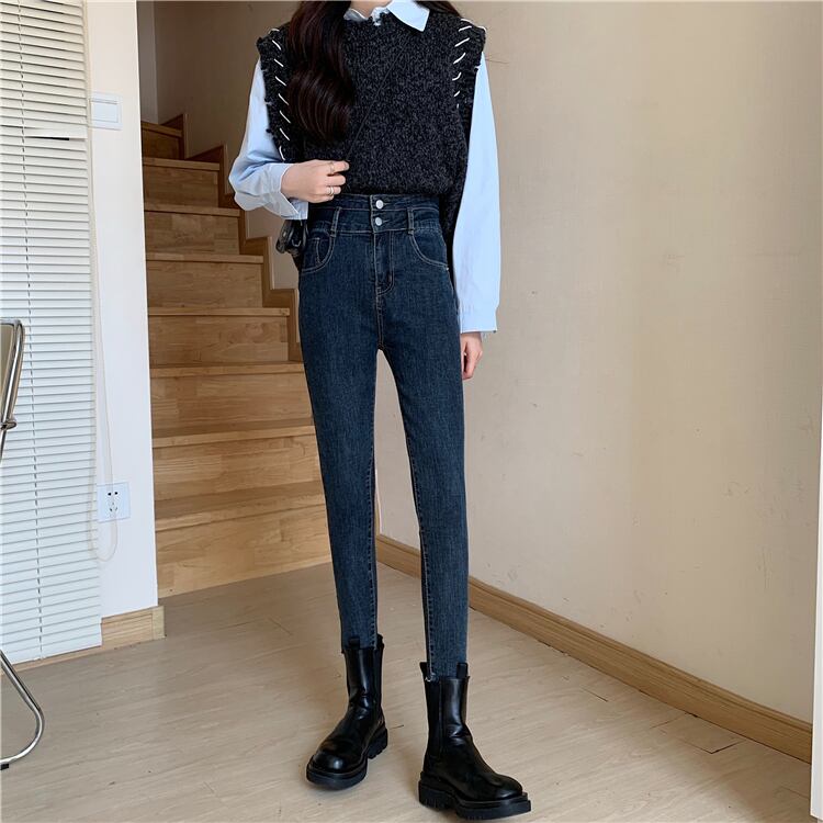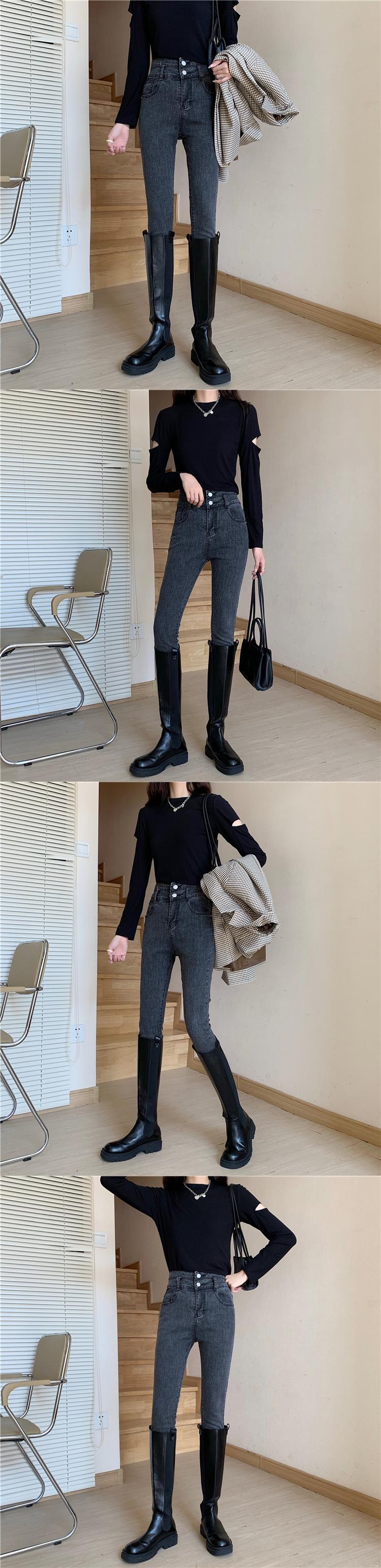パンツ スプリングハイウェストウェスト薄手スリムジーンズ 春物 試着室32253381949