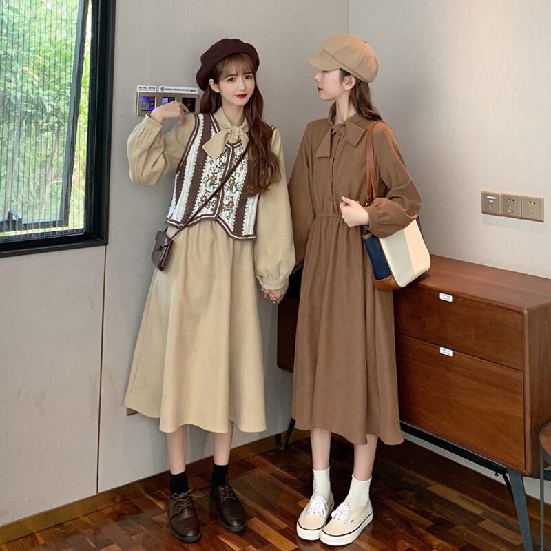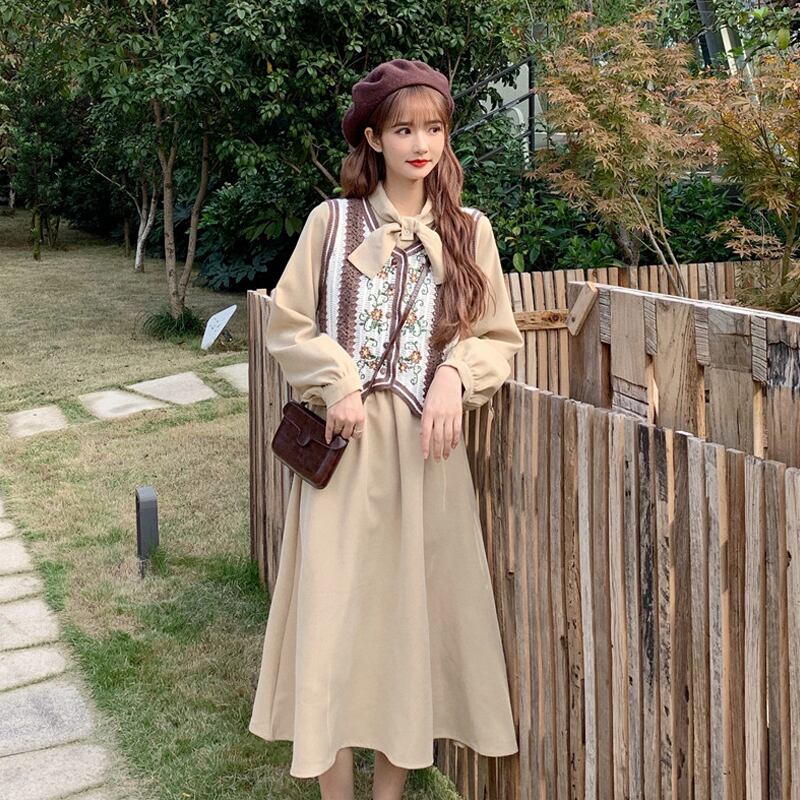 スタンダードスプリングニットドレス レトロ 春物 試着室36440484323