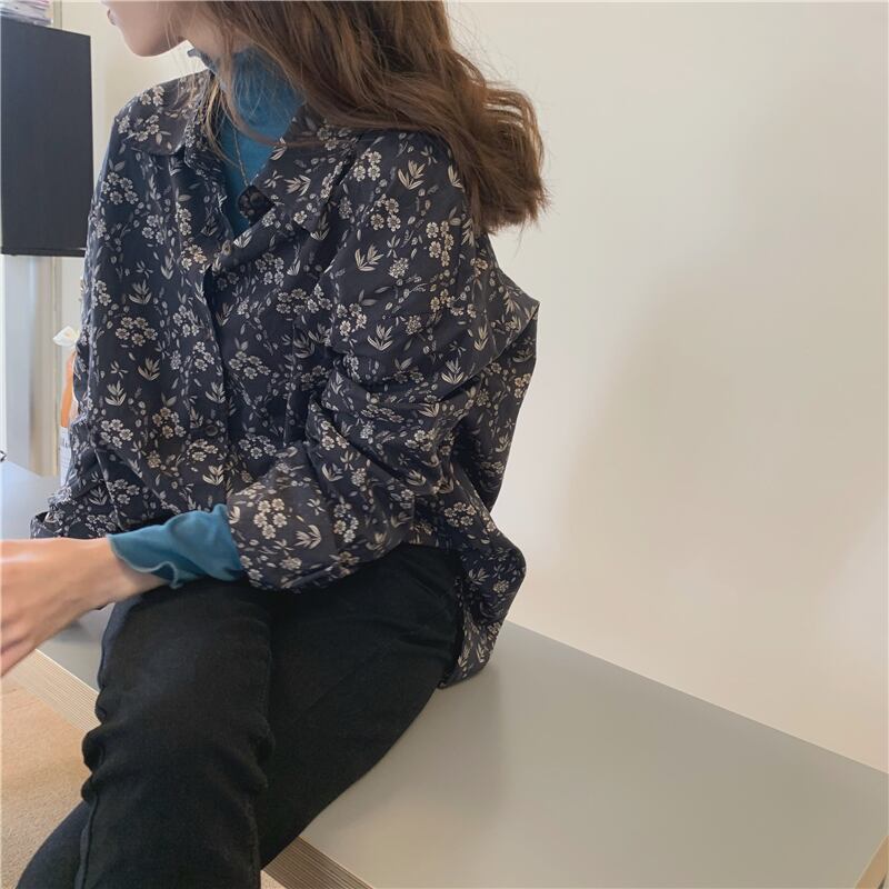スプリングスタイルスタンダードフローラルシャツ トップス ロング レトロ 春物 花柄 試着室69576850825
