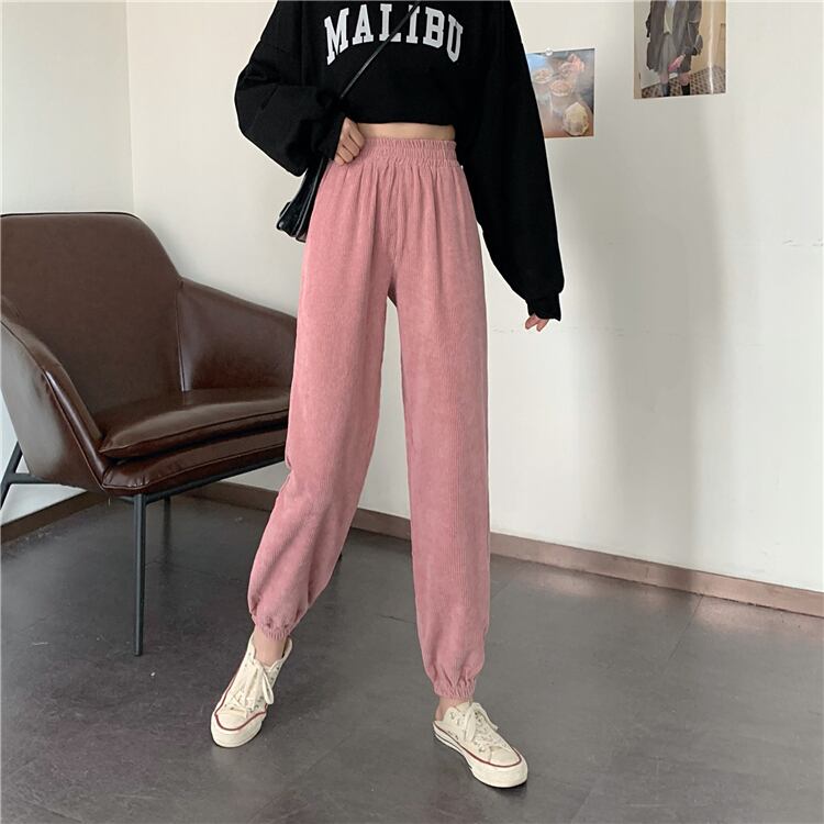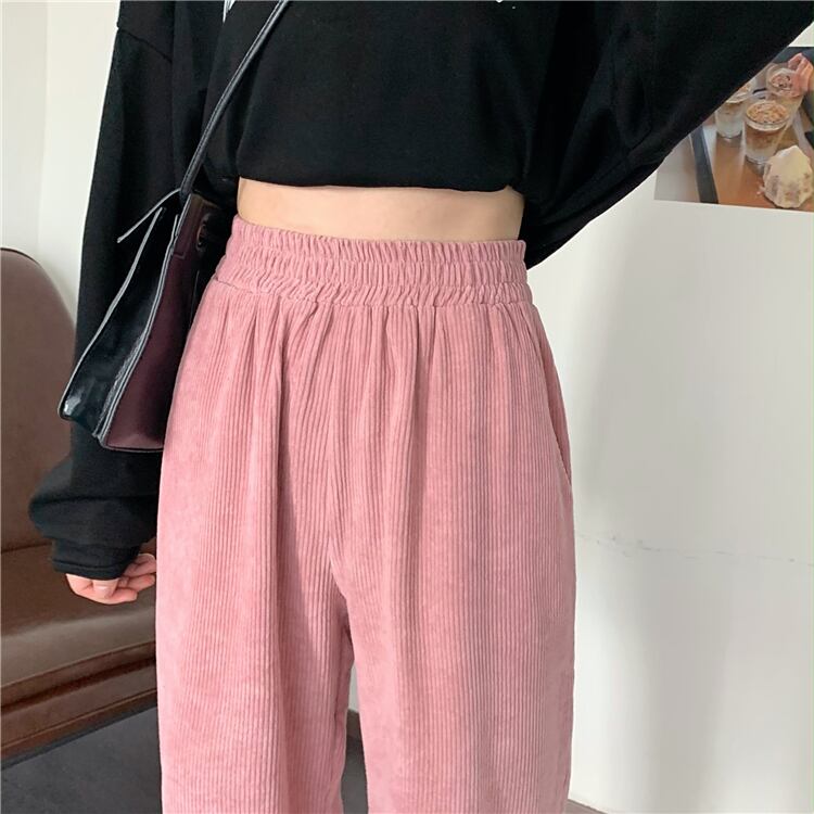 スプリングルーズ薄手コーデュロイパンツ ハイウェストウェストカジュアル コルセット 春物 試着室7109044915