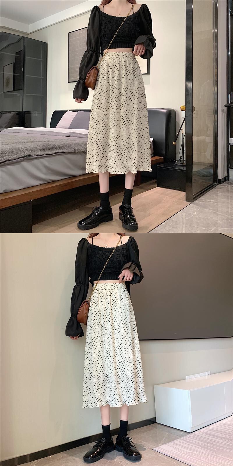 スプリングハイウェストウェストプリーツスカート ロング 春物 試着室61614011242