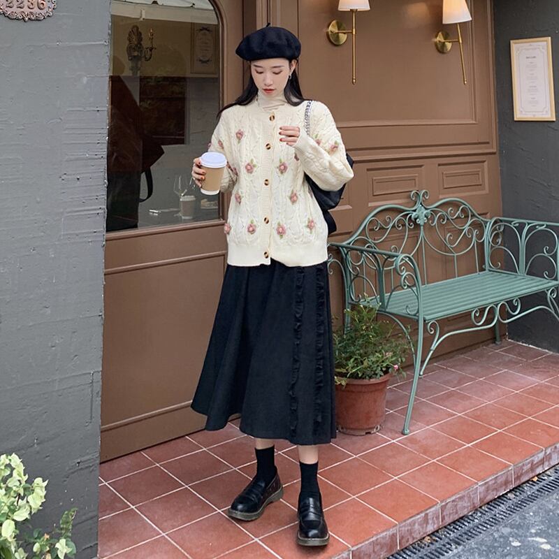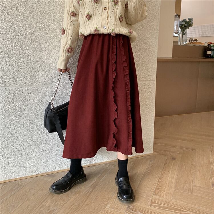 コーデュロイスカート スプリングオータムハイウェストウェスト薄手Aライン 春物 秋物 試着室57388761410