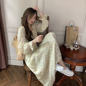Aラインスカート スプリングスタンダードフローラルスタイルドレス レトロ 春物 花柄 試着室8735128544