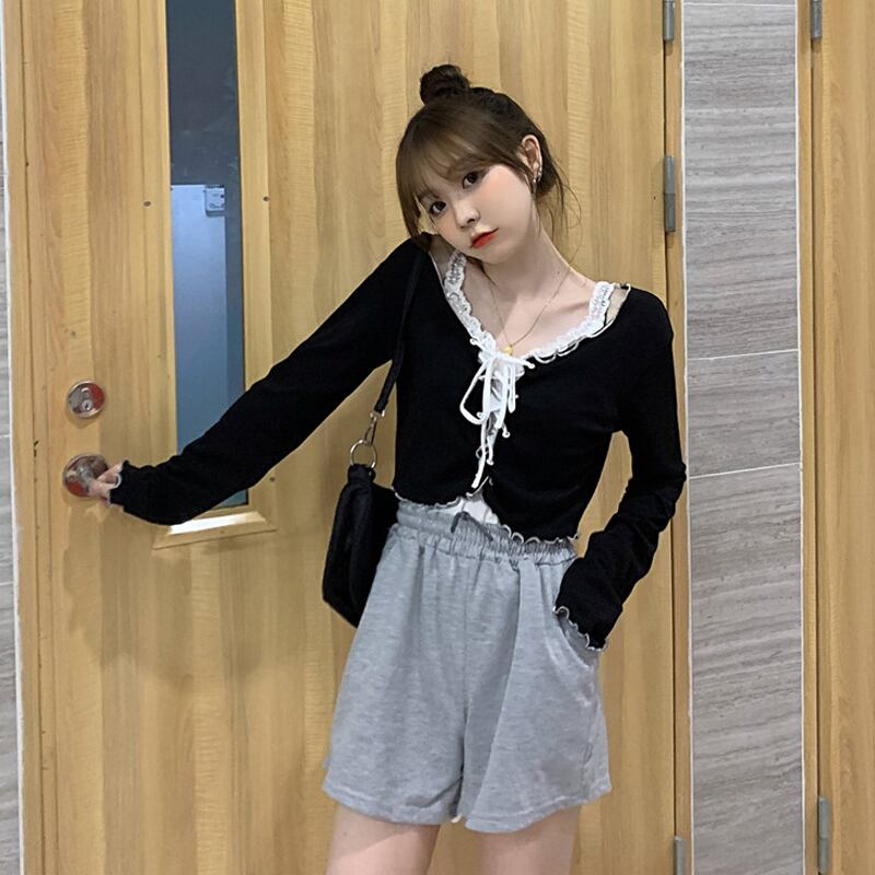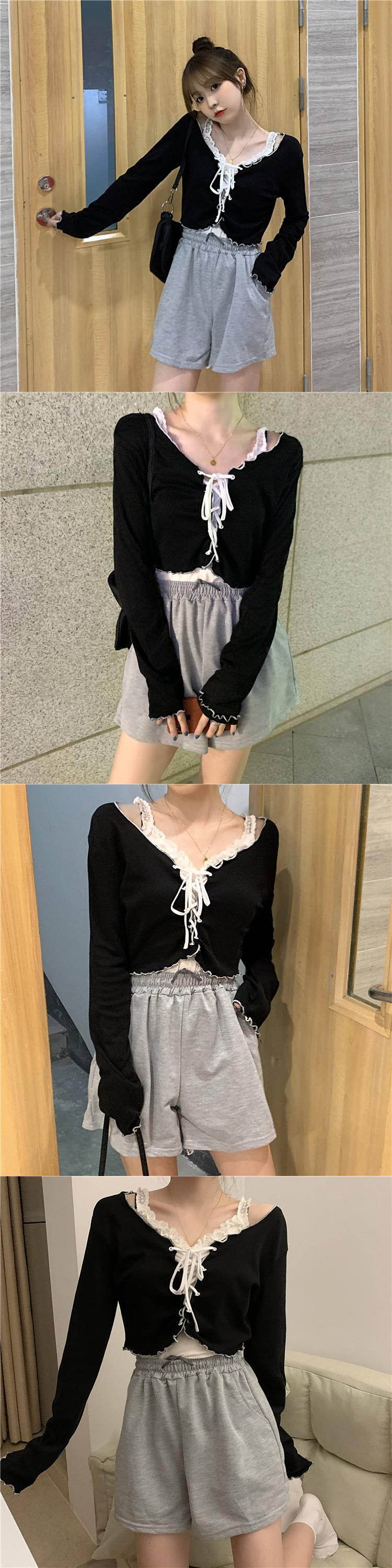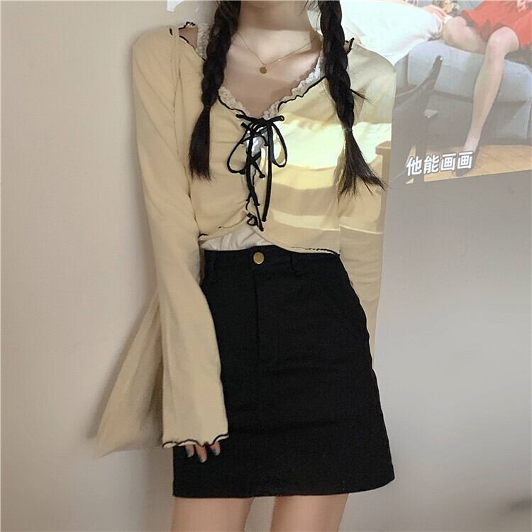 スプリングスタイルショートTシャツ トップス ロング レース 春物 レースアップ 試着室55468673314