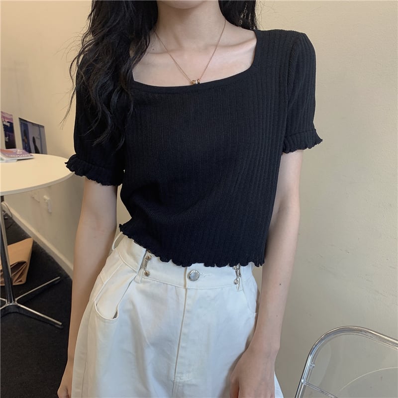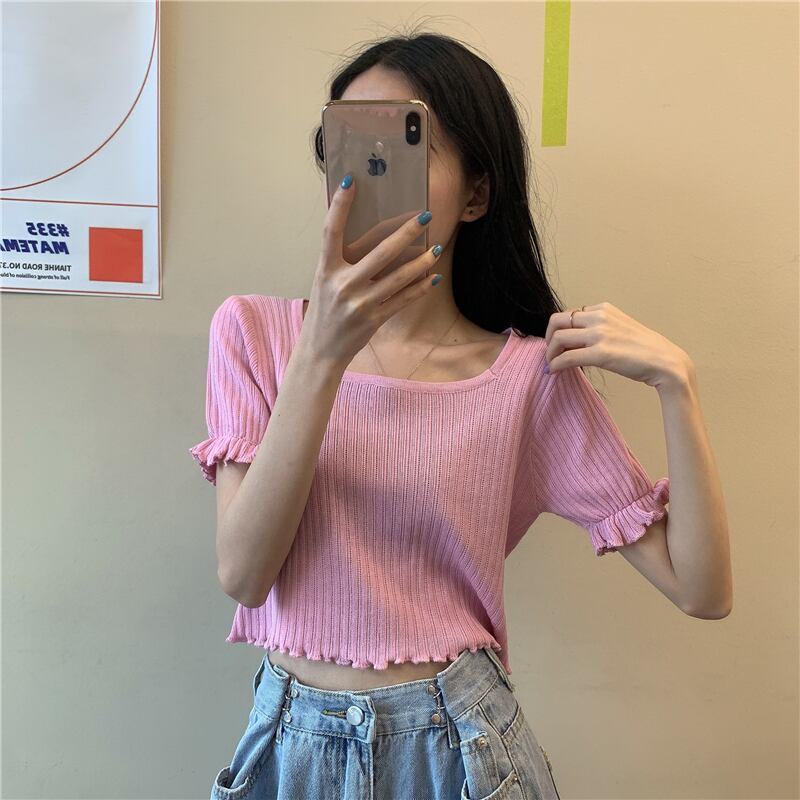サマーカラーショートニットシャツ 夏物 スクウェア 試着室43334238882