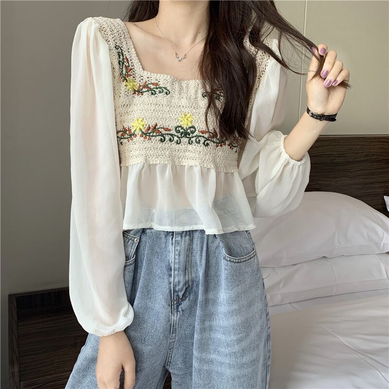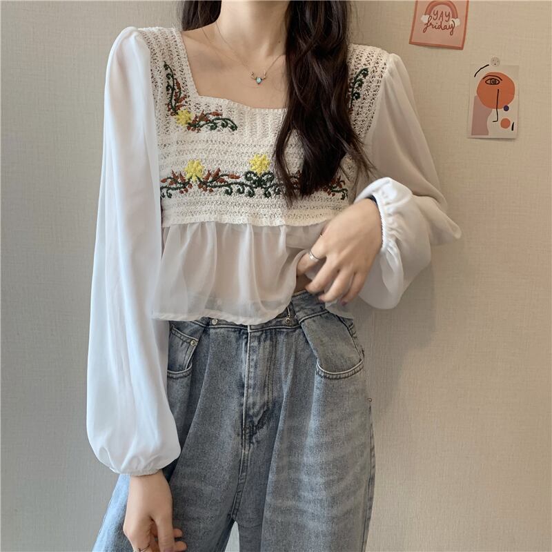 スタンダードブラウス スプリングシフォンシャツ ロング レトロ 春物 試着室5996294402