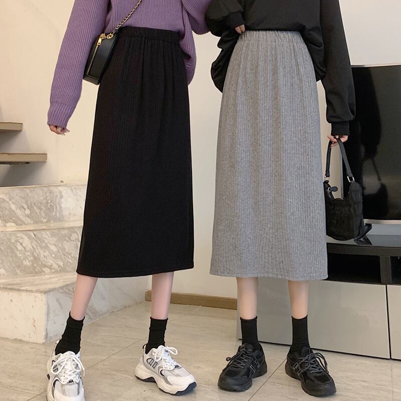 オータムウィンターハイウェストスリムスカート Aライン 秋物 冬物 試着室8437540989